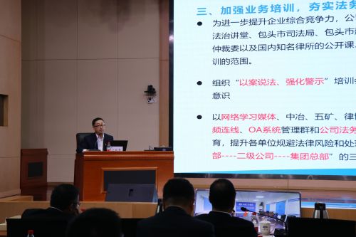 公司在包領導、各部門負責人、各分公司總經理、分管法務工作的領導及在建項目班子成員參加會議。