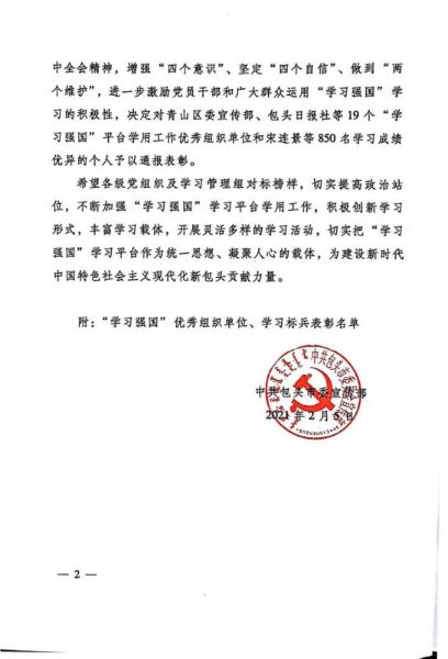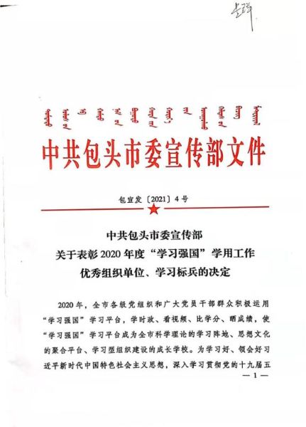 近日,包頭市委宣傳部印發(fā)了《關(guān)于表彰2020年度“學(xué)習(xí)強(qiáng)國”學(xué)用工作優(yōu)秀組織單位、學(xué)習(xí)標(biāo)兵的決定》,中國二冶張明磊、劉慶廣、楊振福、常龍、尚書一、趙春來、張慶、武雨薇、王萬銀、陳志剛等10名同志學(xué)習(xí)成績(jī)優(yōu)異,被授予“包頭市委2020年度‘學(xué)習(xí)強(qiáng)國’學(xué)習(xí)標(biāo)兵”榮譽(yù)稱號(hào)。