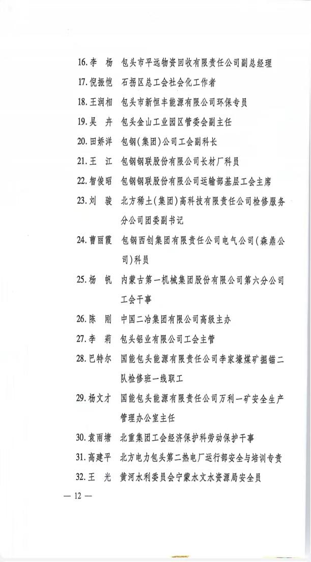 近日,包頭市總工會召開2022年度“安康杯”競賽總結(jié)暨經(jīng)驗交流會,中國二冶路橋分公司榮獲包頭市“安康杯”競賽2022年度優(yōu)勝單位稱號,中國二冶鋼構(gòu)分公司榮獲優(yōu)勝班組稱號,公司工會陳剛榮獲先進(jìn)個人。