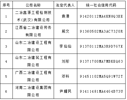 經(jīng)我公司核實,以下企業(yè)名稱中包含“二冶”字號的公司(第一批名單)及其下設(shè)各級子公司均與我公司無任何隸屬或股權(quán)關(guān)系,其一切行為均與我公司無關(guān)。