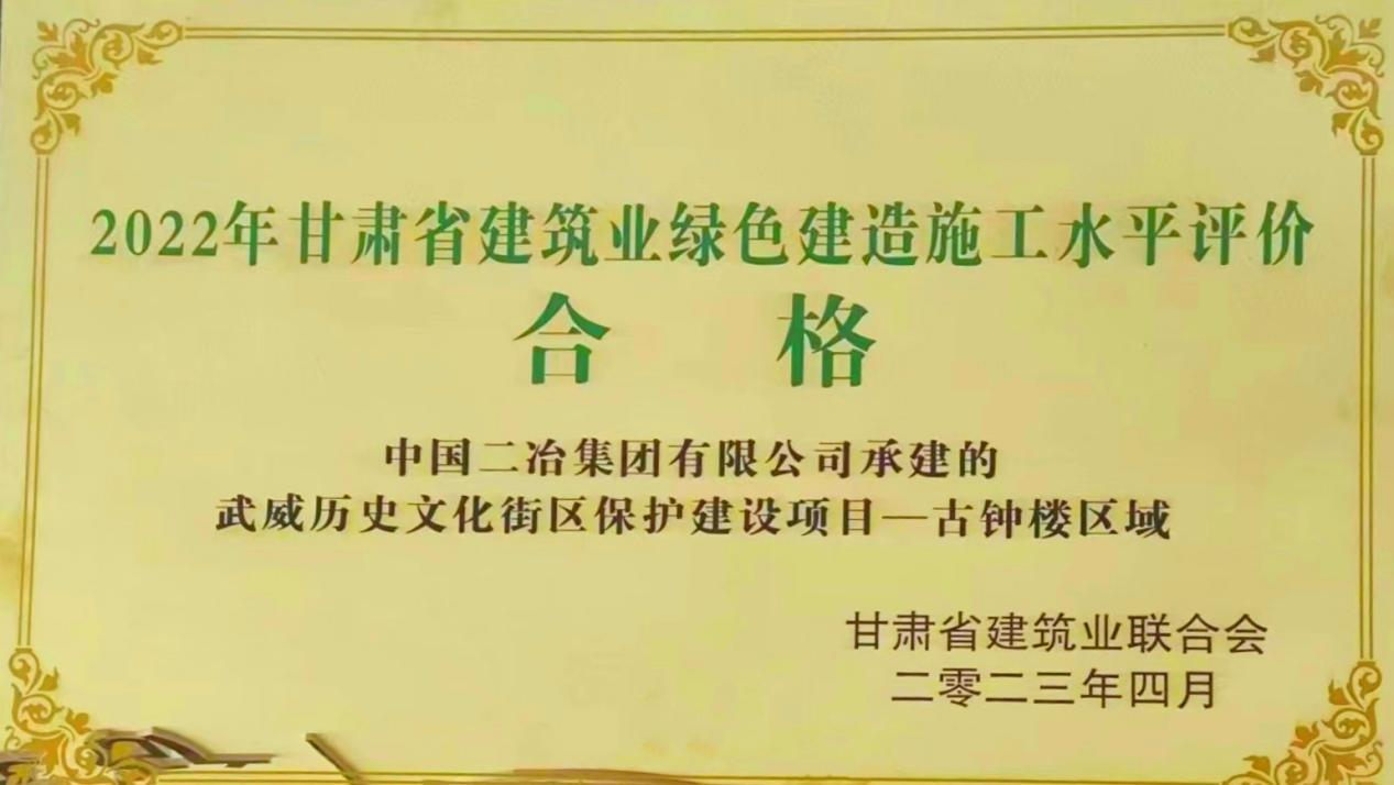 4月25日,甘肅省建筑業(yè)聯(lián)合會公布2022年甘肅省建筑工程文明工地、綠色建造施工水平評價合格項目評選結(jié)果,中國二冶承建的武威歷史文化街區(qū)保護建設(shè)項目榮獲2022年度甘肅省級文明工地及省級綠色建造工地榮譽稱號。
