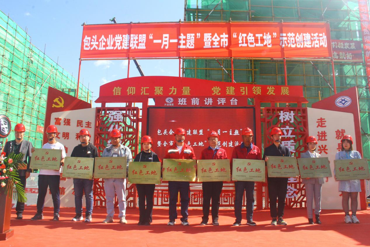 授牌儀式現場,包頭企業黨建聯盟單位詳細介紹了“紅色工地”創建的經驗做法。緊緊圍繞有組織、有制度、有教育、有活動、有服務、有場所、有標識和發揮作用好的“七有一好”創建標準,把支部建在項目上,充分發揮建筑工地黨組織戰斗堡壘作用和黨員先鋒模范作用,引導廣大員工文明施工、創優創獎和技術創新,以“紅色工地”建設推進“標化工地”“綠色工地”“平安工地”創建,以高質量黨建引領高質量工程建設。