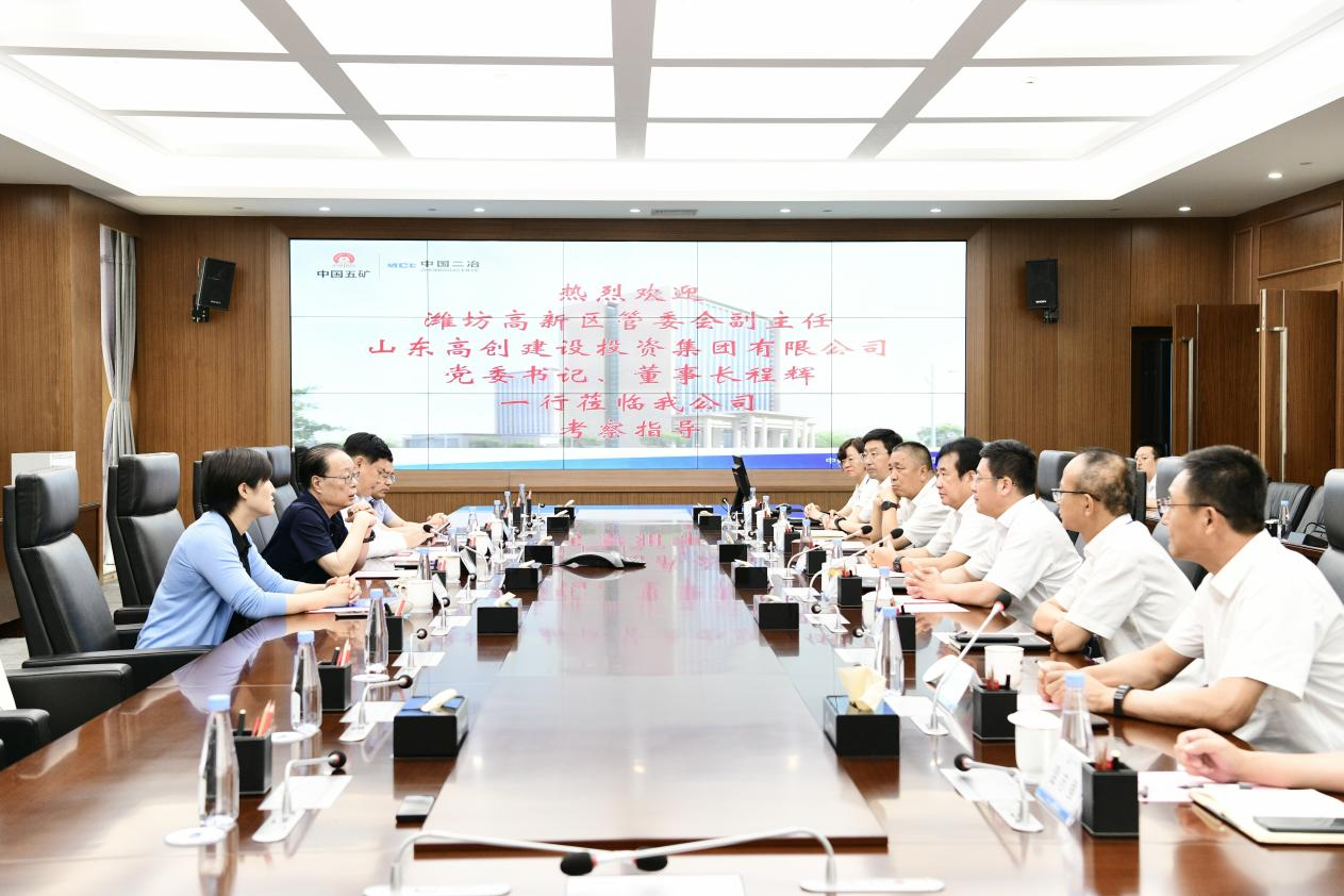 8月4日,中國二冶黨委書記、董事長徐永鋒會見濰坊高新區管委會副主任,山東高創建設投資集團有限公司黨委書記、董事長程輝一行,雙方就加強項目合作進行深入交流。公司黨委副書記、總經理耿永旺,副總經理常志成,總會計師范大鵬等陪同會見。