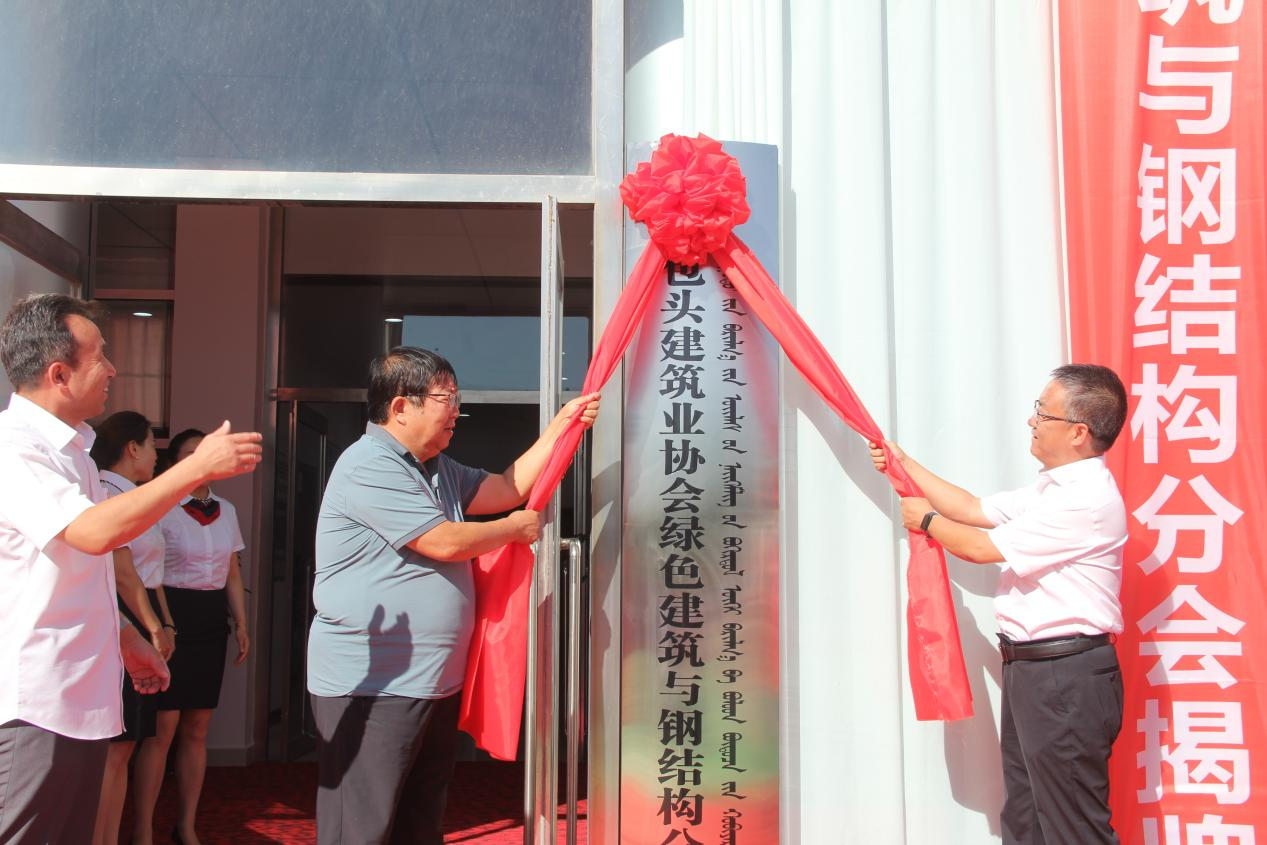 包頭市建筑業(yè)協(xié)會副會長李俊嶺、陳志開、吳偉、侯懷;綠色建材分會會長杜杰;杭蕭鋼構(gòu)等十九家會員單位主要負(fù)責(zé)人;中國二冶鋼構(gòu)分公司主要負(fù)責(zé)人趙智峰、鄭全利、張同剛、潘彩霞等參加揭牌儀式。