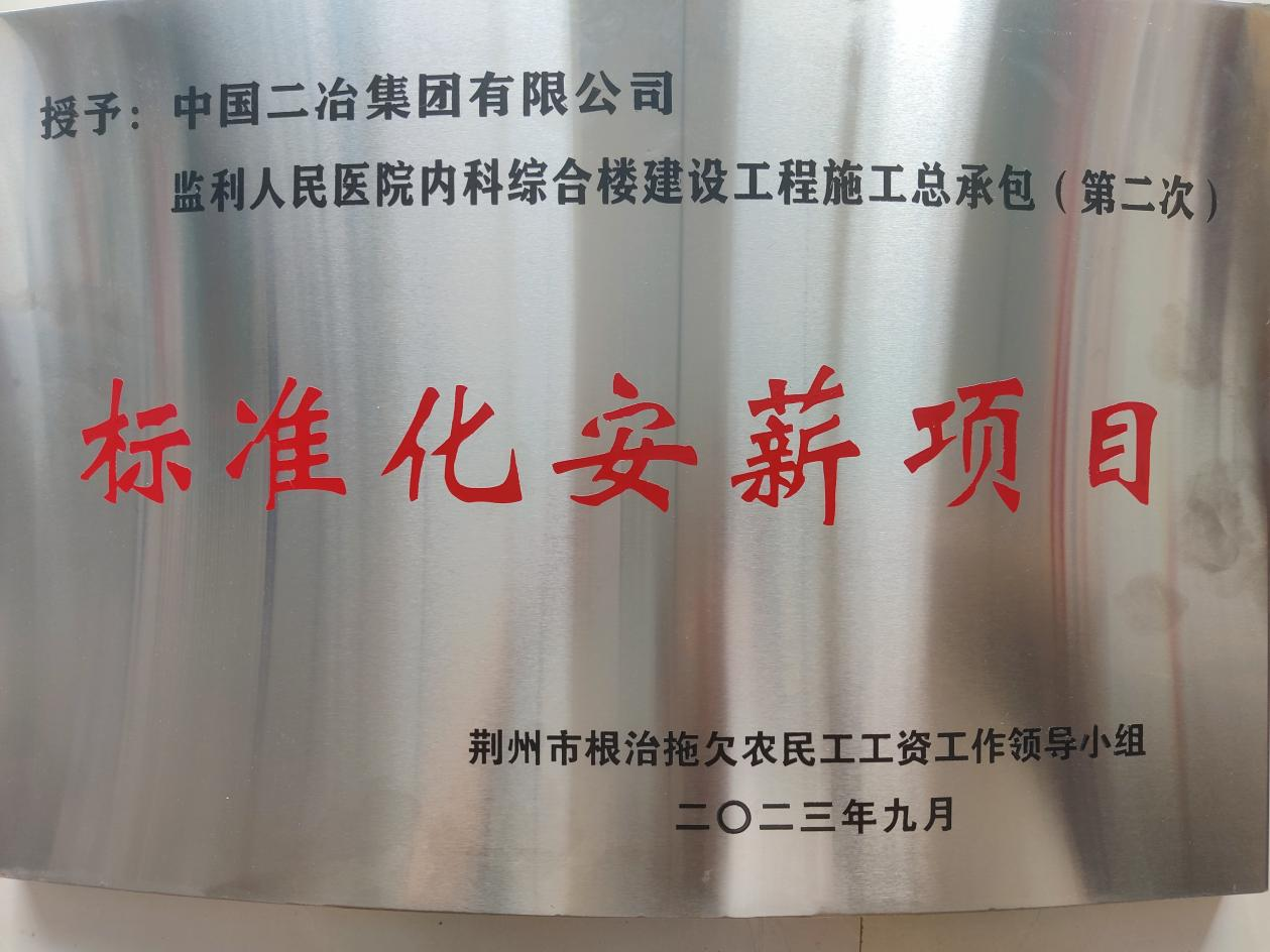 10月10日,中國二冶監(jiān)利市人民醫(yī)院項目在荊州市建筑行業(yè)安全生產(chǎn)標準化工作推進會上,被荊州市根治拖欠農(nóng)民工工資工作領(lǐng)導小組授予“標準化安薪項目”榮譽稱號。