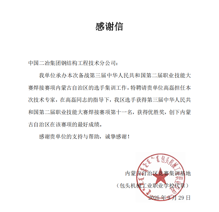 經過系統指導與刻苦訓練,高磊帶領的參賽選手在全國百余支隊伍的激烈角逐中脫穎而出,最終榮獲大賽焊接賽項第十一名,獲得優勝獎,創下內蒙古自治區在該賽項的最好成績。