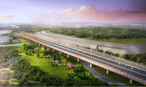 該項目建設地點位于湖南省衡陽市珠暉區,項目西起蒸湘南路,東至終點G107國道,道路全長5.36公里。項目包括道路、橋涵、交通安全、排水、照明、景觀綠化、綜合管廊等專業,其中綜合管廊3.66公里,采用預制疊合裝配整體式混凝土結構技術建造,高架橋梁0.925公里。道路標準段道路設計紅線寬55米,道路設計等級為城市主干路,主路設計速度為60km/h,輔路設計速度30km/h,共計雙向八車道,道路全線為新建。總工期720日歷天。